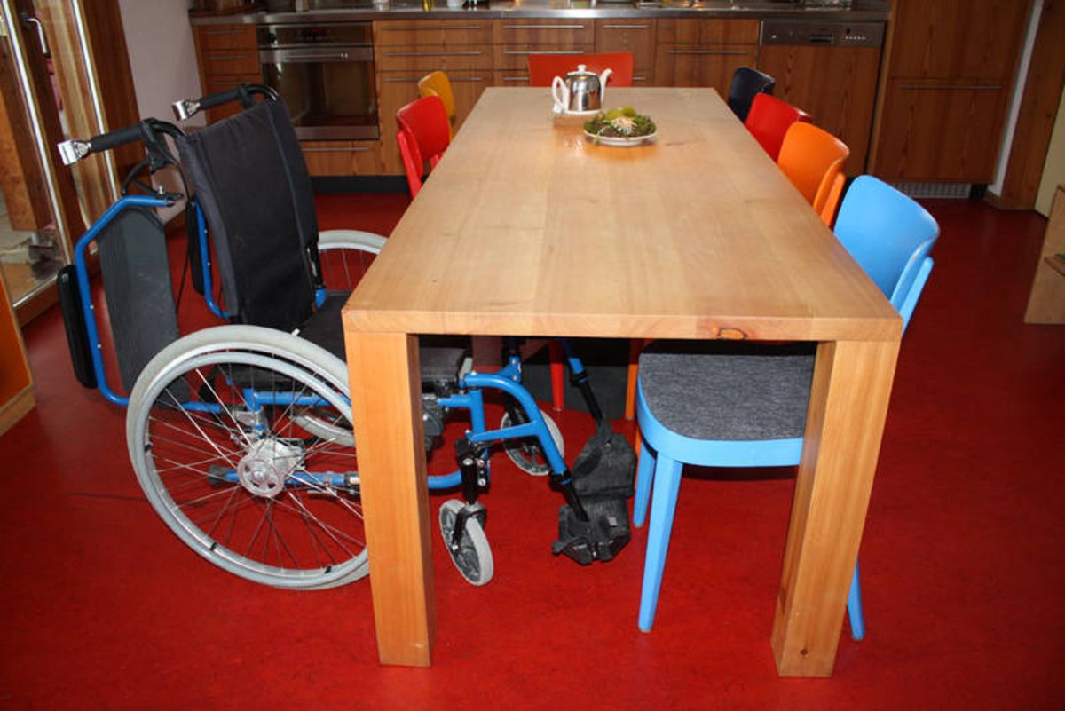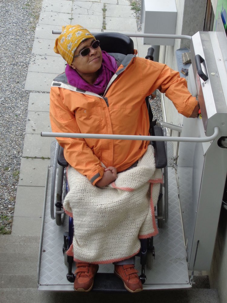 Wir haben unser Haus von Anfang an rollstuhlgängig konzipiert. So sind im Gästegeschoss keine Schwellen zu finden und auch das Bad / WC ist rollstuhltauglich. Da unser Haus jedoch am Hang liegt, muss die Treppe zum Hauseingang mit einem Treppenlift überbrückt werden. Im April 2003 konnten wir den Plattform Treppenlift in Betrieb nehmen. Möglich wurde dies durch die grossartige Unterstützung von folgenden Spender*innen: Aktion "Denk an mich",Stiftung Cerebral, Frieda Locher-Hofmann Stiftung,Carl und Elisabeth Caflisch Stiftung,Buchmann-Kollbrunner Stiftung.