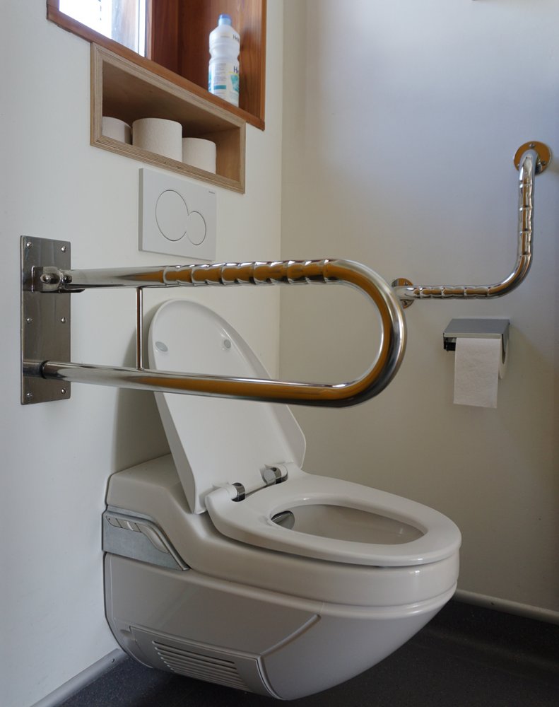 Das neu eingebaute Dusch-WC ermöglicht Gästen, die bei der Hygiene Unterstützung benötigen, mehr Komfort und Selbstständigkeit. Diese Renovation wurde mitfinanziert von folgenden Spender*innen: "Hatt- Bucher Stiftung", "Stiftung Sanitas Davos"