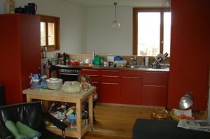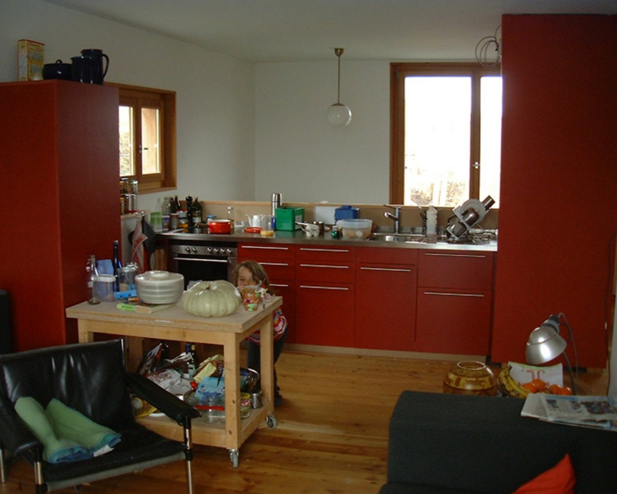 In den ersten beiden Jahren haben wir als Familie unsere private Küche für den Gästebetrieb zur Verfügung gestellt. Die Wohnküche liegt auf der Eingangsebene zusammen mit den drei Gastzimmern. Sie dient zugleich als Ess- und Aufenthaltsraum.