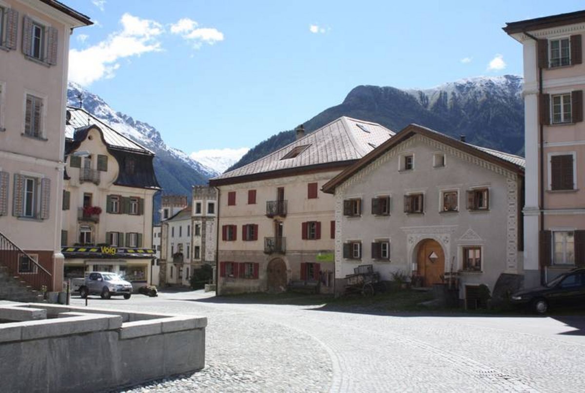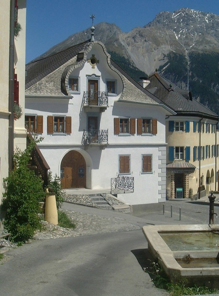 Das Dorf Sent liegt auf einer Sonnenterrasse auf 1430m.ü.m. und zählt knapp 1000 Einwohner*innen. Unser Haus liegt sehr sonnig und ruhig an einem Fussweg am östlichen Dorfrand.